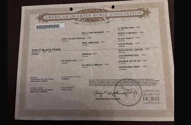 Black Pearl Stute zu verkaufen von Dun It Black Edition und RC Docs Lucy April 2017 Derzeit tragend Geeignet für Freizeit , Sport und Zucht