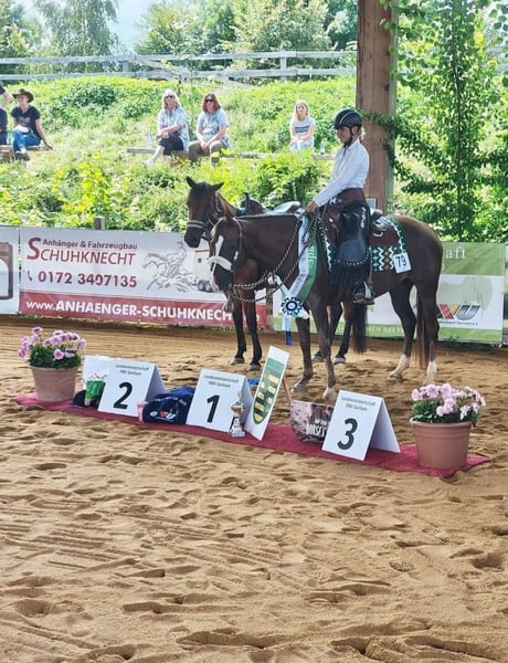 GREAT WALLA WALLA von WallaWallaShine (TopsailWhiz Urenkelin) https://www.allbreedpedigree.com/great+walla+walla Das Traumpferd von Lea und ihre Pferde . LK 1 geshowt. 150cm 7Jahre Vizemeister Ranch Riding EWU - Erste Westernreiter Union Landesverband Sachsen 2025 und weitere Platzierungen. Bei EM & GO gestartet. Lieb, willig, jung und gut ausgebildet. Disziplinen die ihr unglaublich liegen sind Ranch Rail & Ranch Riding aber auch im Trail macht sie sich gut. Sie bringt auch viel Potential fürs Reining mit, was wir allerdings nie ausprobiert haben. Manko sie hat Astma und der Stress und die teils schlechte Luft/ Staub auf Turnier tun ihr nicht gut! Wir möchten nicht zum schaden des Pferdes Leistung erzwingen. Einzig deshalb müssen wir uns für sie für ein anderes Zuhause als Freizeitpferd bzw mit einem entsprechenden Turniermanagement im Paddock und kürzeren Wegen entscheiden. Im besten Fall mit Weidehaltung bzw angepasster Paddock Haltung. Preis im Vergleich zur Ausbildung und Alter entsprechend gering. Bitte nur ernstgemeinte und durchdachte Anfragen an 01511 6544405