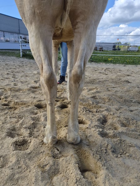 With a heavy heart and due to a reduction in our herd, our 8-year-old Sugardream Whiz Cash, affectionately known as Sugar, is looking for a new home. Sugar is a very friendly Quarter Horse mare in Palomino color, standing at 15.5 hands. Her pedigree is Big Chex On The Cash x Dun It Whiz A Twist. She has only been used for breeding with us, which she has done wonderfully. She truly thrives in her role as a mother and cares lovingly for her foal. For this reason, we are explicitly selling her as a broodmare. Sugar is healthy and has a 5-Panel genetic test with no findings.