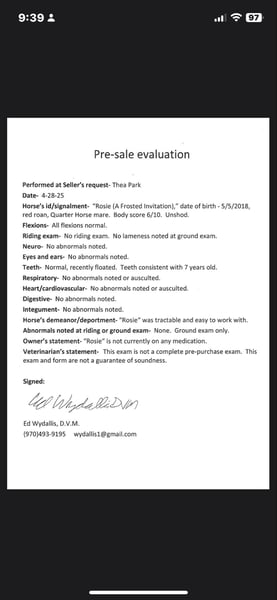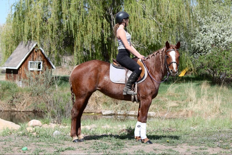 ONLINE AUCTION Place your bids at www.PlatinumEquineAuction.com Starting Bid $3500 Auction ends June 8th, 2025 Need a new saddle? Check out White Rock Saddles on our website or Facebook! Rose (registered name A Frosted Invitation) is an absolutely stunning red roan 2018 model mare with an impeccable set of papers and an even more impressive head on her shoulders. Rose is 15.2, built like a tank, has amazing confirmation and a beautiful mane and tail! This mare is easy to be around, has amazing ground manners, is first one to meet you at the gate, LOVES people and is great for the vet and farrier! Rose will stand tied all day, loads like a queen, stands for baths and tacking, picks her feet without a problem and loves being brushed and loved on. Rose has an impressive western pleasure jog and lope, works off of your legs, stops off of your seat and voice and knows all of her voice commands. Rose opens and closes gates, side passes, spins and has a quick and smooth rollback. Rose is one of the prettiest movers in the western pleasure pen! She is very slow and delicate with an amazing collection. Rose has also been trail ridden extensively and loves being out and about, she has been in town with lots of traffic and commotion or up in the mountains on hard trails and steep terrain- whatever you throw at her- she’s up for the task. Rose rides out in a group or alone and doesn’t care where she is in the pack. Rose has carried a flag, walked over tarps and tires, had balls thrown at her and dealt with a lot of chaos and commotion with ease. Rose had done basic English work as well and absolutely loves it, she knows where her feet are for the cavaletti, has had extensive feet work and even done some hunter jumper as well as been over a couple of cross country courses! (Which she absolutely adored) and has not missed or dodged a jump!! She has a lot of tuck and scope and could go extremely far in that world with some consistency. For more info contact Dynamite Horses Thea 970-632-6344 with any questions. Located in Fort Collins, CO. ONLINE AUCTION Place your bids at www.PlatinumEquineAuction.com Starting Bid $3500 Auction ends June 8th, 2025 Need a new saddle? Check out White Rock Saddles on our website or Facebook!