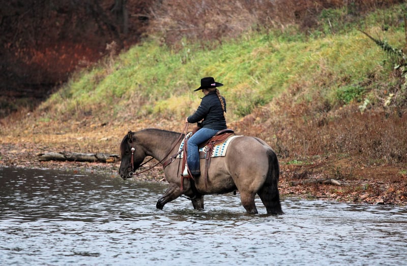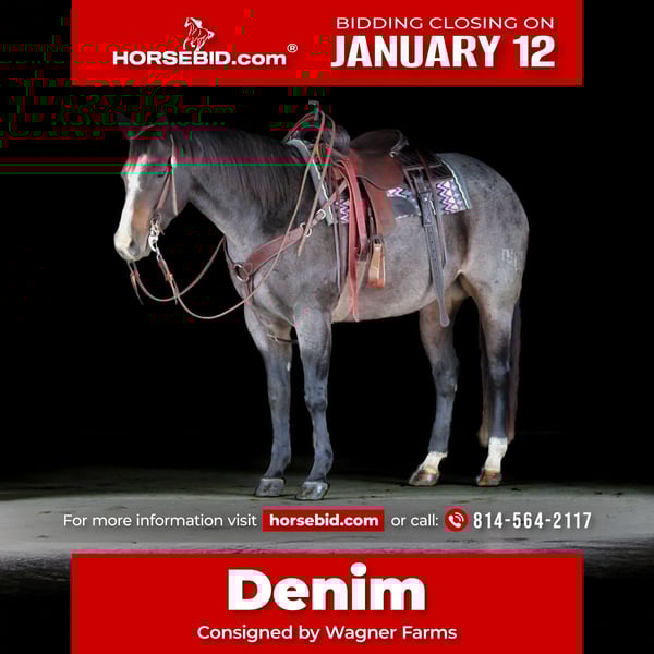 ♦️𝐍𝐄𝐖 𝐘𝐄𝐀𝐑'𝐒 𝑬𝒙𝒕𝒓𝒂𝒗𝒂𝒈𝒂𝒏𝒛𝒂♦️ Happening now thru MONDAY | JANUARY 12th - Available EXCLUSIVELY on HorseBid's website! For more details and to register visit: www.Horsebid.com CONSIGNOR CONTACT: Wagner Farms 814-564-2117 LOCATION: Clarion, PA BREED: QH REGISTERED: Yes REGISTERED NAME: Buenos Tres Marias COLOR: Blue Roan HEIGHT: 15.1 AGE: 8 GENDER: Mare Buenos Tres Marias is a Registered 8 Year Old Blue Roan Mare. Her barn name is Denim and Denim is a barn favorite. She is a total sweetheart to be around and loves attention!! Denim is really good broke to ride but she is also very quiet, laid back, gentle and safe to ride making her suitable for the whole family, all types of riders and timid riders. We have been trail riding her and arena riding her and she wears a ranch brand on her hip. Denim has had professional training and has a nice one hand neck rein , good stop , back up , side pass and nice head set. She is a great trail horse! Will go anywhere you point her and never hesitate . Over the logs, thru the mud and across the water. Very seasoned on the trails. She is very well broke but one of my favorite things about her is how easy and not complicated she is to ride. She makes riding stress free and fun! She has great bloodlines too. Let her sit long periods of time without being ridden and she will stay good broke and gentle. She doesn't need to be ridden often to stay gentle. She is the whole package and the kind of horse that is hard to find. Dont Miss Out On Her! Call or Text Glory at 814-564-2117. Thank You and God Bless