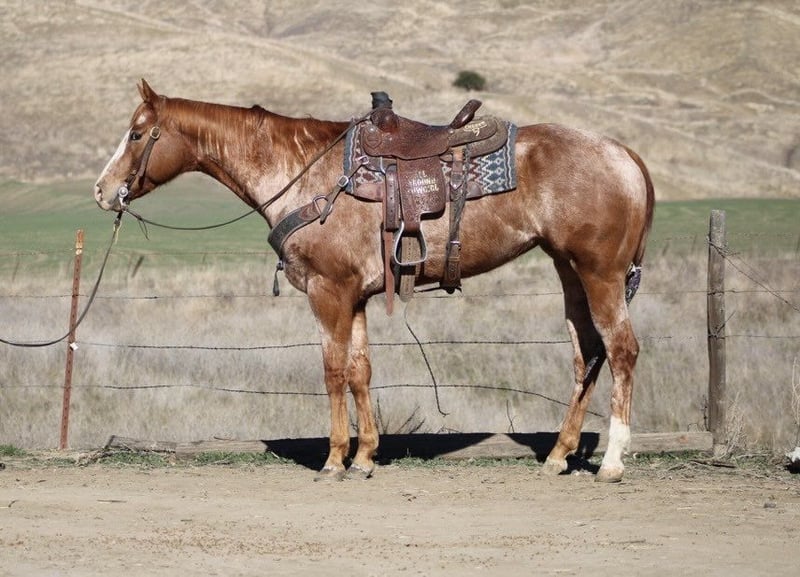 ONLINE AUCTION Place your bids at www.PlatinumEquineAuction.com Starting Bid $3500 Auction ends February 9th, 2025 Need a new saddle? Check out White Rock Saddles on our website or Facebook! CNC Lady Jaye, aka Lady, is a registered champion mare and a stunning Appaloosa. She was foaled on February 26, 2018. She stands a tall drink of water at 16.1 hands and has nice conformation. This girl is fun; she has a nice extended trot and carries herself well. She is well suited to be an English horse with her fluid movement. Lady has been used for trail riding and has been very easy to handle. She will walk up or down any trail, navigates downed trees, brush, ditches and crosses water while remaining calm. She is a friendly horse that is gentle and willing to try new things. She has gathered cattle and has also been used to check fences on the ranch. Lady has been shown in some halter classes and was a weanling champion, also placing in several other halter champion titles. She has also dabbled in some 4-H shows in trail and equitation, and has shown successfully in halter. If you are wanting to dabble in a little bit of everything, she would be a great choice for you. In the arena, she picks up her leads, has a smooth stop, and a naturally collected backup. Her movement is very fluid and pretty. She is ready to go in any direction you would like to take her. She is super willing, has no silliness to her, and just wants to be your friend. Lady has done obstacles such as tires and bridges, all with ease, and is really taking a liking to it. She is easy to shoe, clip, and bathe. She loads and hauls great and has no bad habits. Please contact Longhorn Ranch, Dina, located in Paicines, CA, at 831-537-1915. ONLINE AUCTION Place your bids at www.PlatinumEquineAuction.com Starting Bid $3500 Auction ends February 9th, 2025 Need a new saddle? Check out White Rock Saddles on our website or Facebook!
