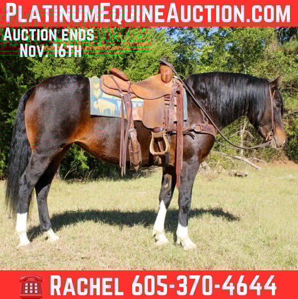 ONLINE AUCTION Place your bids at www.PlatinumEquineAuction.com Starting Bid $3500 Auction ends November 16th, 2025 Need a new saddle? Check out White Rock Saddles on our website or Facebook Milly is a 8 year old bay mare, she stands 14.2 hands tall and is stout! Milly is a QH/ Welsh cross mare. She is absolutely gentle and sweet as they. Milly is super cute and has a temperament to match her looks. Milly is the perfect partner for riders of all ages and skill levels, from beginners to experienced riders. Milly’s calm and patient demeanor makes her a joy to work with. With her sturdy build and smooth gaits, she’s comfortable to ride for hours on end. Milly has been trail rode all over, she is absolutely gentle and easy to get along with, she goes anywhere you ask her and always has a willing and positive attitude! Milly has also had a light start in the arena and shows alot of potential and would even excel under English tack! If you’re looking for a smart and willing young mare that is also absolutely gentle then don’t miss the opportunity to make Milly a part of your family! Located in Rusk TX, nationwide shipping is available! Please reach out to Rachel with TR Livestock 605-370-4644 if you have any questions! Located in Rusk, TX. ONLINE AUCTION Place your bids at www.PlatinumEquineAuction.com Starting Bid $3500 Auction ends November 16th, 2025 Need a new saddle? Check out White Rock Saddles on our website or Facebook