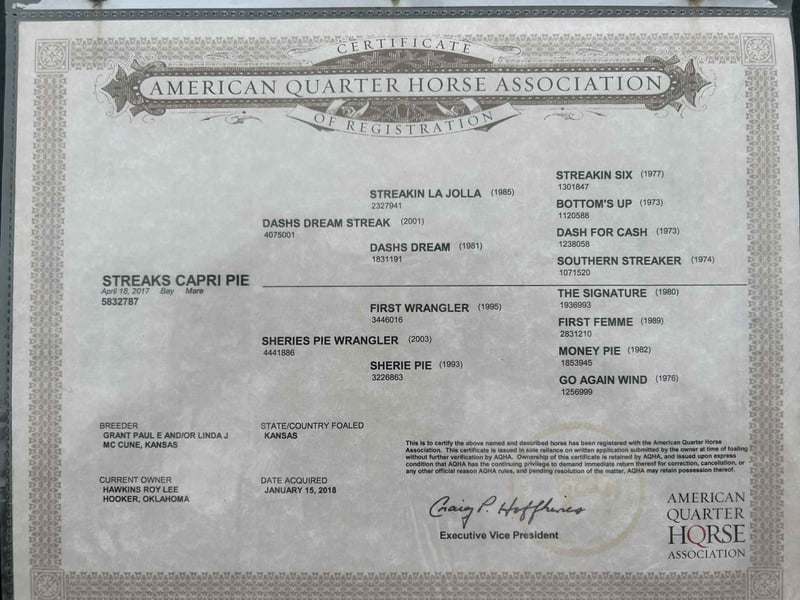 ONLINE AUCTION Place your bids at www.PlatinumEquineAuction.com Starting Bid $3500 Auction ends October 12th, 2025 Need a new saddle? Check out White Rock Saddles on our website or Facebook AQHA 2017 Streaks Capri Pie… Pie is a pretty blood bay standing about 15 hands tall. She has been trail ridden extensively by an older gentleman for the past 5 years. He also roped cattle on her at his farm as well as ponied colts on the trails. Pie has been on overnight trail rides, packed saddle bags, and tied to the picket line overnight. Pie will trail ride alone, in small groups, as well as large groups. She is use to traffic, ATV’s, heavy machinery and dogs. You can ride down the road, ride the farm, head to a local playday, go hit the trails and relax. She will travel the trails with ease, go through the creeks, over bridges and up and down the big cliffs. Pie will neck rein, W/T/C, side passes, stops when asked and backs up. On the ground Pie has great ground manners and will be patient and respectful everyday. She stands tied quietly, stands for farrier, to groom, tack up and baths. She jumps right in the trailer and unloads easily. She will stand at a mounting block for you to get on and off and doesn’t move until asked. We invite you to come check Pie at our barn in Henderson, Kentucky. We are happy to assist with transportation arrangements. PPE at buyers expense. For any questions about Pie please call or text S&T Livestock Tasha 270-844-2400. ONLINE AUCTION Place your bids at www.PlatinumEquineAuction.com Starting Bid $3500 Auction ends October 12th, 2025 Need a new saddle? Check out White Rock Saddles on our website or Facebook