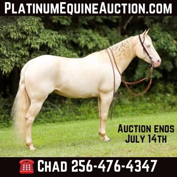ONLINE AUCTION Place your bids at www.PlatinumEquineAuction.com Starting Bid $3500 Auction ends July 14th, 2024 Need a new saddle? Check out White Rock Saddles on our website or Facebook! Ginger is a 7 year old, 15 hand, cremello mare that has all the looks and lots of shape! She belonged to an older man her whole life has been trail ridden by him! She has been on several week long trail rides, been camping in many states and seen everything that you can think of! She will cross ditches, creeks, logs, deadfall and is very sure footed. She is super sweet with a cute head and gentle, calm eye! She is fun to ride and loves to swim the creeks and lakes! Ginger is a trail rider’s dream horse! She is super smooth and easy going! Anyone is sure to love and appreciate her! Located in Mt. Hope, AL. Call Chad Little 256-476-4347. ONLINE AUCTION Place your bids at www.PlatinumEquineAuction.com Starting Bid $3500 Auction ends July 14th, 2024 Need a new saddle? Check out White Rock Saddles on our website or Facebook!