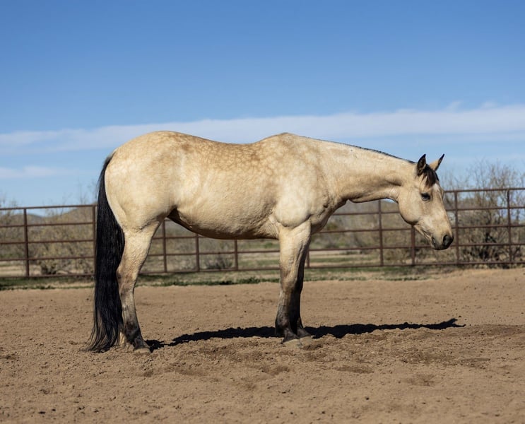 ❤️🔥𝑩𝒆 𝑴𝒊𝒏𝒆 𝐒𝐄𝐋𝐄𝐂𝐓❤️🔥 Happening now thru MONDAY | FEBRUARY 9th - Available EXCLUSIVELY on HorseBid's website! For more details and to register visit: www.Horsebid.com CONSIGNOR CONTACT: Hailey Okamura 208-899-2621 LOCATION: Wickenburg, AZ BREED: American quarter horse REGISTERED: Yes REGISTERED NAME: Sushi Addiction COLOR: Buckskin HEIGHT: 15 AGE: 9 GENDER: Mare Sushi is a 15 hand 9 year old registered mare that has been on our ranch her entire life. She is a finished head horse that will fit intermediate and experienced ropers. She lopes correct circles. This mare is sound at a walk trot and lope in both directions. The scar on her neck and left hind leg are from an accident as a colt that cause her zero lameness issues now. We have started her on the breakaway. Sushi is easy to saddle, bath, blanket and shoe. With any further questions please contact me at (208) 899-2621.