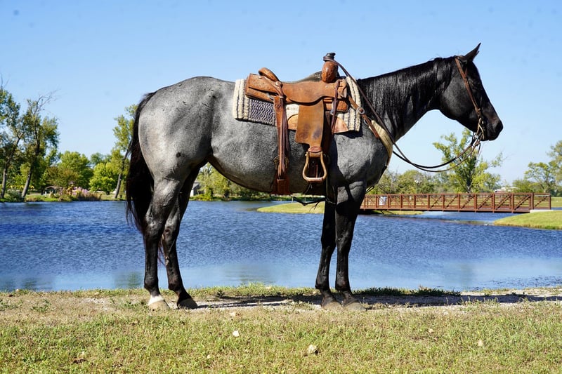 🍂 𝓐𝓾𝓽𝓾𝓶𝓷 𝑨𝑳𝑳 𝑺𝑻𝑨𝑹 𝑳𝑰𝑵𝑬𝑼𝑷 🍂 Happening now thru MONDAY | OCTOBER 6th - Available EXCLUSIVELY on HorseBid's website! For more details and to register visit: www.Horsebid.com CONSIGNOR CONTACT: Kp Ranch 4028417763 LOCATION: Corsica SD BREED: Quarter horse REGISTERED: No COLOR: Blue roan HEIGHT: 15.2 AGE: 8 GENDER: Mare Diamond is an eye catching true blue roan mare, she is prime aged and beautifully made. She has been used for pleasure classes and trail and leisure to riding around the farm, Lopes as slow as a walk and smooth as can be, this mare is so fun and enjoyable to ride and have around, super easy going personality. A great all around mare. Good to catch, good for farrier, loads/unloads/hauls great. A super nice mare for anyone to enjoy. Call or text for more information 402-841-7763