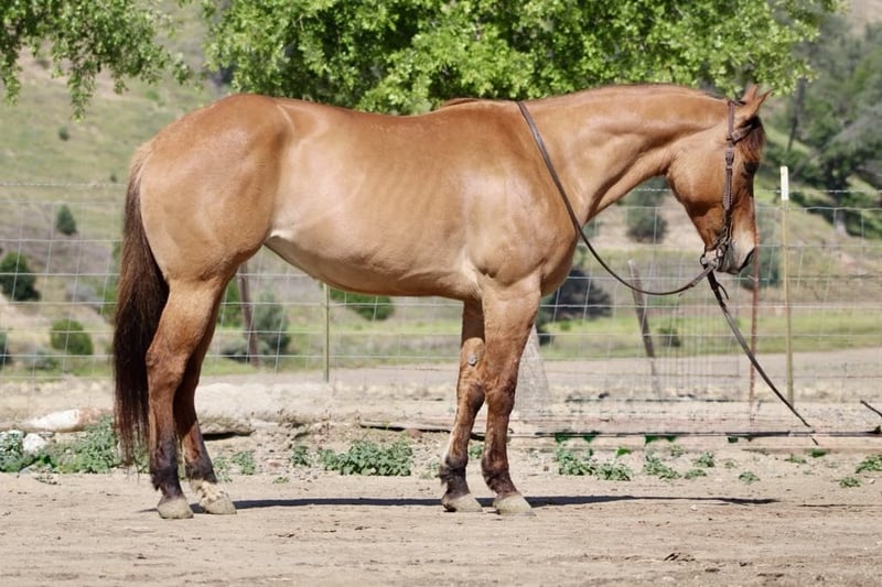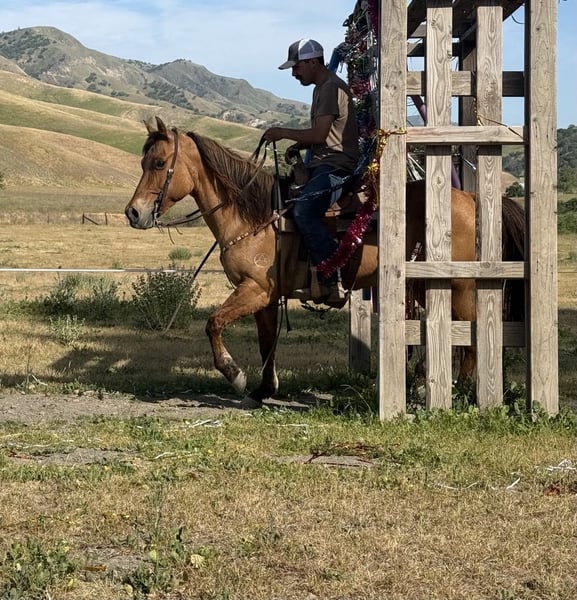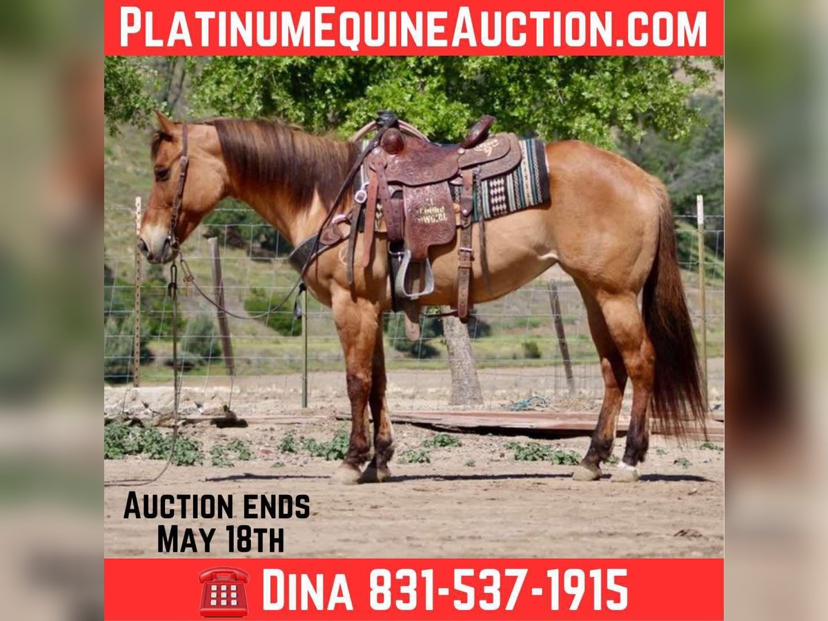 ONLINE AUCTION Place your bids at www.PlatinumEquineAuction.com Starting Bid $3500 Auction ends May 18th, 2025 Need a new saddle? Check out White Rock Saddles on our website or Facebook! This mare is a beautiful dun. She stands at 14.3 hands, is 8 years old, and is a broke mare nice to ride. She is friendly and easy to be around, and she is a total love. She enjoys people and is easy to ride. She is one-hand neck rein broke and eager to please. She lopes nice, correct circles and executes smooth stops and easy backups. She has a nice little turnaround also. Bestie is a great trail partner; she navigates trails with ease. She will go up or down any trail, over trees and logs, and walks right through water. Bestie will go over all the trail obstacles, covered wagon bridges, tires, and all—no problem for this girl. Flags, tarps, and bouncy balls are all met with confidence. She has been used to gather cows and likes to work them started on the lead steer and would make a fun heel horse. Bestie is easy to clip, bathe, and shoe. She loads well and hauls great. She can be pastured or stalled, and she goes out alone or in group settings. Please contact Dina at Longhorn Ranch 831-537-1915 Located in Paicines, CA. I would love to discuss this pretty girl with you so give us a call! ONLINE AUCTION Place your bids at www.PlatinumEquineAuction.com Starting Bid $3500 Auction ends May 18th, 2025 Need a new saddle? Check out White Rock Saddles on our website or Facebook!