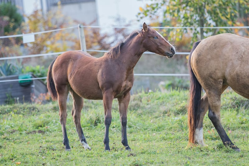 Stutfohlen im Bay/splash sucht ihren Lebensplatz