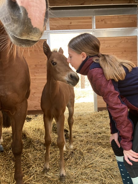 Am 11.03.2025 wurde Margie geboren. Margie ist ein American Quarter Horse Stutfohlen in Bay, doppelt registriert Sir: GUNSPARKS (Gunners Crome Sun) Dam: LDR DUNIT IN THE GUN (Guns of Enterprise) Stutbuch I Prämienstute Teilnehmer Bundesstutenchampionat Sie korrekt gebautes, zeigt athletischen Bewegungen und ist Reining + Allround gezogen. Sie wächst in einer liebevollen Hobbyzucht im Herdenverband auf, kennt bei Abgabe Hunde, Traktoren, Schmied, Tierarzt und 24 Stunden Koppel. Margie hat partiell blaue Augen. Sie ist 7 Panel N/N getestet. Bei Abgabe besitzt Sie ein DQHA Pass und ein AQHA / APH Papier. - weiterhin sie über Laboklin für Lethal White Overo (LWO) und Splashed White N/N getestet Sie erlernt das Fohlen 1×1 und wird nach dem Absetzen ab Oktober in ein gutes Zuhause abgegeben. Unsere Pferde erhalten hochwertiges Futter was sie bei einer optimalen Versorgung von Sehnen, Gelenken und Knochen unterstützt. Margie ihre Halbschwester steht ebenfalls zur Besichtigung. Margie wurde zur Paint Horse Fohlenschau am 06.09.2025 in Könnern vorgestellt. Hier konnte sie mit ihrem athletischen Gang und perfekt bemuskeltem Body überzeugen und erhielt die Wertnote 8,10. Somit ist sie 1a Prämienfohlen. Sie wurde 2. in der Klasse der Stutfohlen und war 2 bestes Fohlen von 18 der gesamten Fohlenschau. Wir wünschen uns für Margie ein 5- Sterne zu Hause, nach Möglichkeit mit Förderung im Sport. Für näheres sowie Bilder/Videos gern melden, Am besten persönlich vorbeikommen und sie kennenlernen. 015151173110