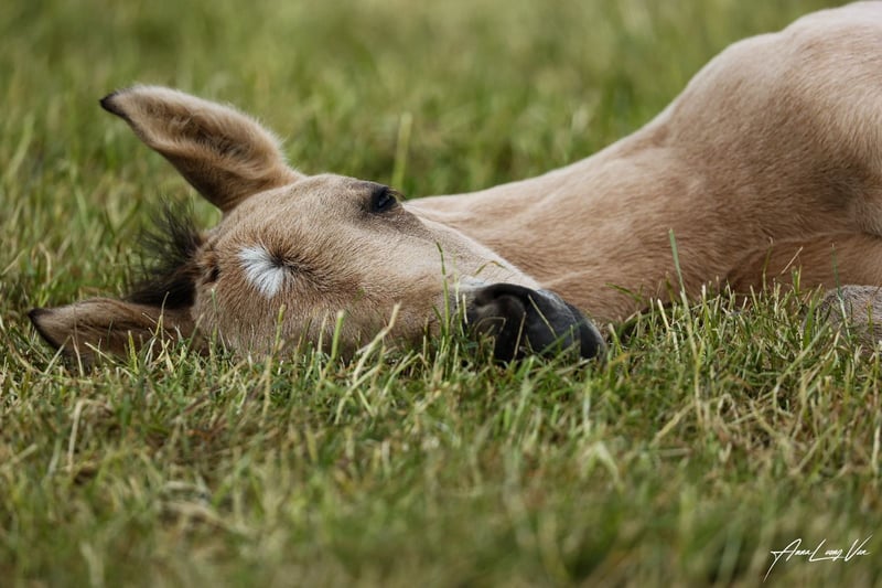 Wir verkaufen unsere ‚April‘ aka KK Best Twist N Step. Sie wurde am 29.04.2025 geboren. Ihre Mutter ist Best Of Invy, eine Tochter von Invy This Playgirl, einer hocherfolgreichen Allaround Stute. Diese ist von Green With Invy. Väterlicherseits ist sie über Double Goodness gezogen. Ihr Vater ist Golden Twist N Step ist unter anderem Dt. Meister EWU Junior Western Ranch Rail 2023 und Vize Dt. Meister Junior Western Riding 2024. In 2025 wurde er Int. Deutscher Ranch Trail Champion der DQHA und gewann Bronze in der Working Rail auf der Q25. Mit sieben Jahren hat er schon über 1.000 EWU Punkte und folgende Pferdemedaillen erreicht: Gold Western Ranch Rail Gold Trail Silber Ranch Riding Bronze Western Riding Auf der Q25 wurde er im Bundeschampionat der Wallache Reserve Champion. Über die Eltern ist sie 5 Panel n/n. Bei der Geburt sah sie eindeutig nach Buckskin aus, im ersten Fellwechsel erschien ein dicker Aalstrich. Da der Vater d/nd1 ist kann sie auch Dun oder Pseudo-Dun sein. Bei der Zuchtschau am 10.08.25 in Ennigerloh wurde sie mit 80,91 % als bestes Stutfohlen bewertet und erhielt damit die 1A Fohlenprämie der DQHA. Außerdem wurde sie Reservesieger der gesamten Schau. Auf dem Bundesfohlenchampionat der DQHA am 11.10.2025 präsentierte sie sich gut und belegte den 14. Platz. Leider hatte sie kurz vor der Schau einen starken Wachstumsschub und war etwas überbaut. Vor allem aber war sie während des gesamten Abenteuers total brav und mutig. April war zur Schau schon abgesetzt und fuhr also ohne Mama. Unsere Fohlen werden regelmäßig mineralsiert und entwurmt. Sie könnte zur weiteren Aufzucht bei uns bleiben. Aktuell lebt sie in einer Fohlengruppe im Offenstall. Meldet euch bei Fragen gerne einfach bei mir. www.kk-Westerntraining.de 0176 1474 1474 Kerstin Averwald Wessenhorst 15 59320 Ennigerloh