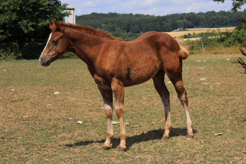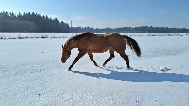 Wytrzymały ogier Quarter Horse kolor red dun ur. w 2016 roku, ma 10 lat około 147 cm wzrostu testy 5 Panel n/n oraz IMM negatywne Wallstein to bardzo elegancki, kompaktowy ogier o harmonijnej budowie ciała i prostych nogach. Posiada piękną, delikatną głowę, gęstą grzywę oraz dużo wyrazu. Dotychczas był użytkowany jako ogier reprodukcyjny (naturalna krycie) i nie był jeszcze jeżdżony. Przez ostatnie lata spokojnie przebywał w stadzie z klaczami i źrebakami, a obecnie stoi z dwoma młodymi ogierami w boksie obok klaczy. Latem był wypasany przez całą dobę, a dzięki zmiennym pastwiskom miał kontakt z drogami, lasami i terenami leśnymi, co zaznajomiło go z ruchem ulicznym, maszynami rolniczymi oraz z tłumem ludzi. Przyzwyczaił się również do prowadzenia na lonży w towarzystwie stada. Jego pochodzenie z Walla Walla Dun It (Hollywood Dun It) robi wrażenie, a od strony matki pochodzi od znanych koni, takich jak Great Resolve (Great Red Pine) czy High Brow Hickory. Jest bystry, delikatny i zwinny, a jego chęć do pracy i zadowolenia jest przekazywana na potomstwo. Obecnie jego potomstwo jest jeszcze na farmie i można je obejrzeć podczas wizyty. Zdjęcia wcześniejszych źrebiąt dostępne są w galerii.