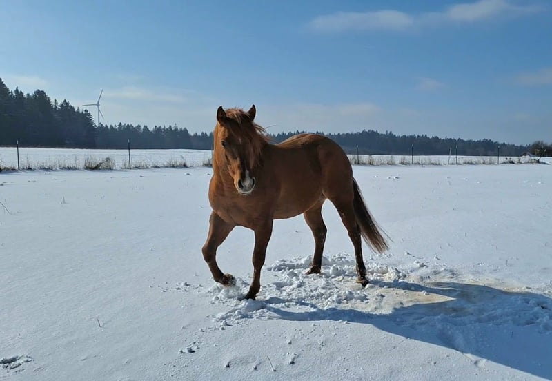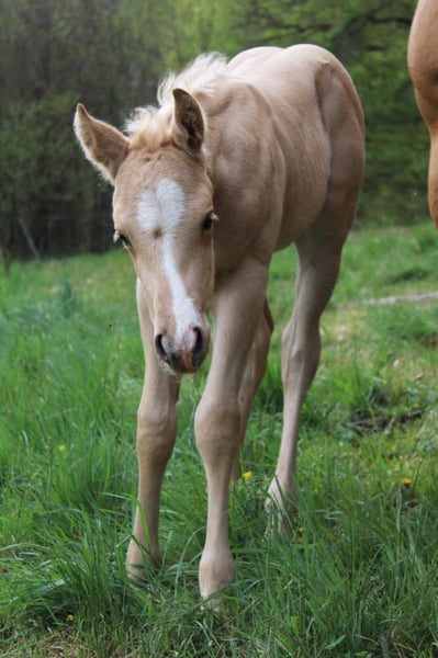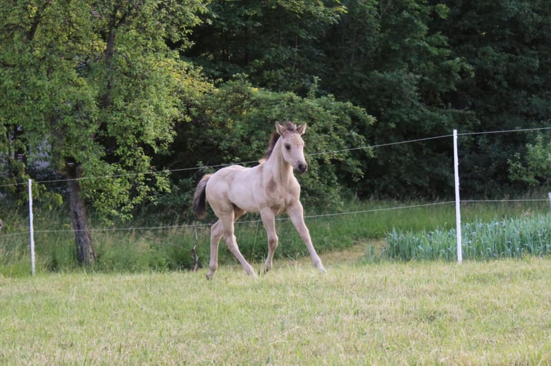 Expressive QH Stallion Red dun Born in 2016, age 7 Approximately 14.1 hh (1.44 m) tall 5-panel n/n and IMM negative tested Wallstein is a very handsome, compact stallion with a harmonious build and straight legs. He has a refined, intelligent head, a thick mane, and a lot of expression. He has previously been used for natural cover breeding and has not yet been ridden. In recent years, he has peacefully shared a herd with mares and foals year-round and is currently housed in a paddock alongside two young stallions and some mares. He is accustomed to 24/7 pasture turnout in summer, and has been exposed to varying pastures near roads, forests, and woodland paths, making him familiar with traffic, farm machinery, and public activity. He is also used to being led on halter and moved with the herd. His pedigree includes Walla Walla Dun It (Hollywood Dun It), and he also has notable names on his dam’s side, such as Great Resolve (Great Red Pine) and High Brow Hickory. Smart, refined, and agile, he passes on his willing and eager-to-please nature to his offspring. Foals from him are currently on the farm and can be viewed during a visit.
