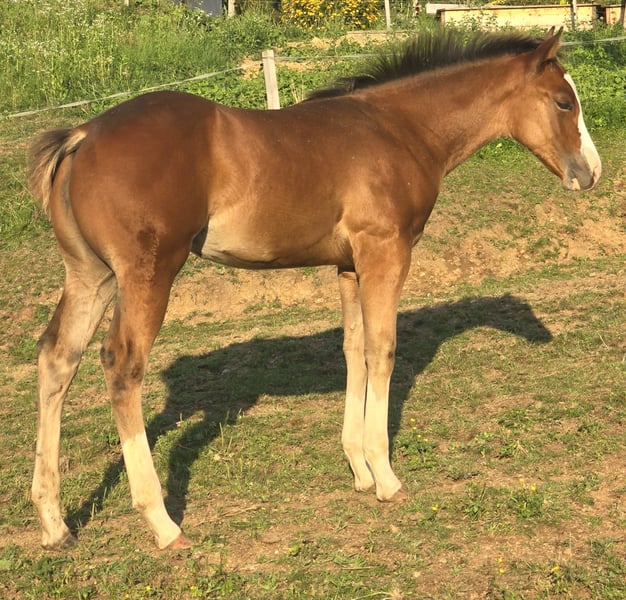 Disponible pour un nouveau foyer, un poulain vraiment magnifique. Très bien construit, très calme et amical. Il apportera beaucoup de bonheur à son futur propriétaire. Toutes les chances de devenir un excellent cheval de concours un jour ou simplement votre partenaire de tous les jours. Également intéressant pour la reproduction.