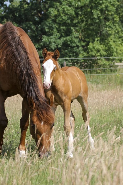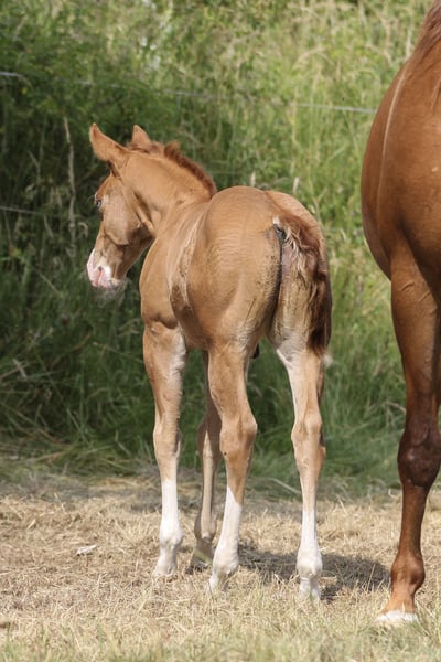 Cole - seine schöne Farbe, das blaue Auge und sein bildhübsches Erscheinungsbild machen ihn zu einem echten Hingucker. Er ist 2025 geboren und wird ein geschätztes Endmaß von 150 cm bekommen. Cole ist ein kompakter, kräftiger und stark bemuskelter Quarter Horse Hengst. Sein gutes Gebäude, seine Gesundheit und sein freundlicher, menschenbezogener Charakter sprechen für ihn. Cole ist gut sozialisiert, kennt Tierarzt und Hufschmied, wächst in einer kleinen Stuten- und Fohlengruppe auf. Seine Gelassenheit, Lernwilligkeit und Offenheit machen ihn leicht im Handling und sehr angenehm im Umgang. Mit erstklassiger Reining-Abstammung ist er bestens für den Sport, Turnier oder auch die Freizeit geeignet. Cole zeigt beeindruckende Bewegungen und hat das Potenzial, ein richtig athletisches Pferd zu werden. Da er ein Hengstanwärter ist, wird er gerne in entsprechende Hände abgegeben, aber auch Freizeitreiter mit gehobenen Ansprüchen können mit ihm glücklich werden. Die klinische AKU wird im Rahmen des Verkaufs von der Züchterin in Auftrag gegeben.