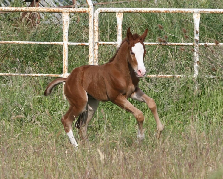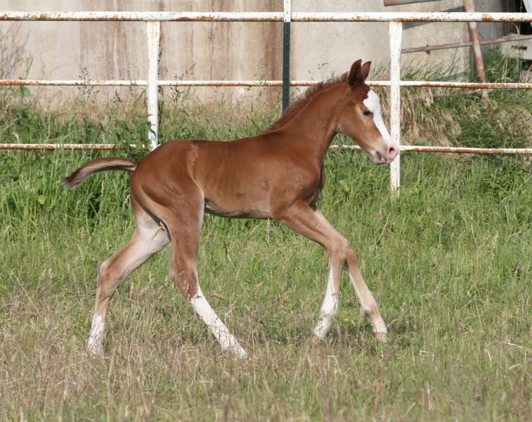 We are selling our foal, 'Mogli' aka KK Special LikeABoon. This little guy, dressed in his bright chestnut coat with distinctive markings, was born on May 23, 2025. Currently, it looks as if he will also develop Rabicano coloring. His mother is Special Little Step, a granddaughter of Wimpys Little Step. His sire is RedWhiteAndBlue Boon, a two-time Futurity winner in Cutting in Italy. Our foal has been tested n/n for the 5-panel genetic test. At the foal inspection on August 10, 2025, in Ennigerloh, he was rated at 79.79%. At the German Foal Championship of the DQHA on October 11, 2025, he performed like a seasoned competitor, placing an excellent 5th out of 14 foals presented. Most importantly, he was very well-behaved and brave throughout the entire event. All our foals are regularly mineralized and dewormed. He could stay with us for further upbringing. Mogli has been weaned and currently lives in a foal group in an open stall. Feel free to contact me with any questions: Kerstin Averwald Wessenhorst 15 59320 Ennigerloh Phone: 0176 14741474 www.kk-westerntraining.de