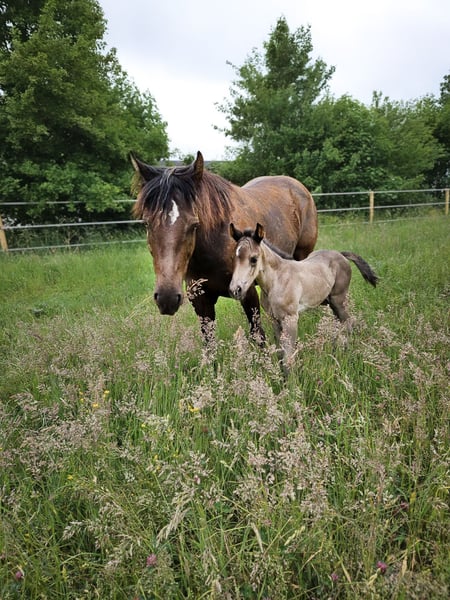 We are offering our Quarter Horse foal, born on May 24, 2025, for sale. This promising Quarter Horse foal is looking for a loving and nurturing home. He captivates not only with his stunning color but also with his friendly, curious nature. Thanks to his sire, Mr. Electric Spark, he possesses excellent foundational qualities and has the potential to become a versatile partner in both leisure and sport. He is being raised appropriately in a harmonious herd environment. Jax is handled daily, naturally knows the basics of foal manners, and is regularly introduced to the farrier. He is accustomed to farm life, including tractors, loaders, and dogs, and is not at all fazed by them. Jax can be moved to his new home at any time. He is only to be placed in the very best and responsible hands. His parents are Panel n/n, and he is expected to reach approximately 153 cm. He may be smoky black; we are still awaiting the results of the color test. The CoR for AQHA registration has been applied for, and of course, he is vaccinated and regularly dewormed. If you are interested, I look forward to hearing from you!
