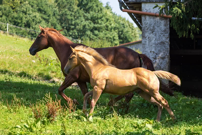 Desde el principio, mucho movimiento - el manejo en establos abiertos con grandes praderas asegura un desarrollo óptimo de la musculatura, el fundamento y la psique.