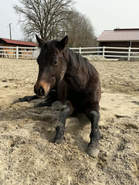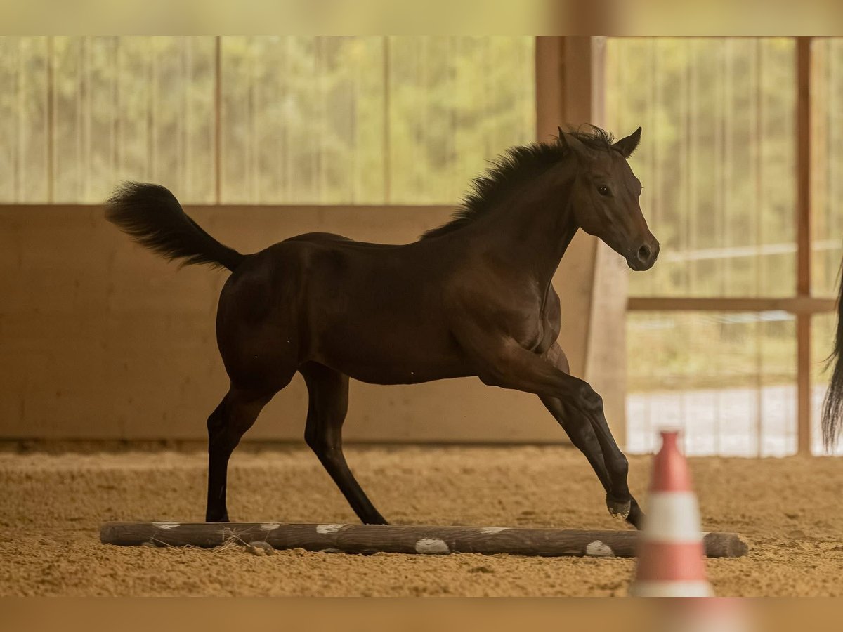 Aint It Blackjac, born on March 13, 2025, is an exceptionally typey Quarter Horse colt in a solid bay color without markings. His expected final height is approximately 15.0-15.3 hh. As a foal, he already impressed at the German Quarter Horse Association (DQHA) foal show, where he was awarded Reserve Champion for colt foals with an outstanding overall score of 82.17%, a remarkable testament to his quality. This young stallion captivates with his harmonious, compact, and very correct conformation, featuring well-developed musculature and a natural athletic build. Combined with his elegance, strong presence, and extraordinary charisma, Jac is truly a eye-catching prospect. His movements already display quality, elasticity, and expressiveness. His highly interesting pedigree combines willingness to perform and versatility, making him well-suited for a successful sporting career. Jac shows promising talent in Ranch Riding already today, but also possesses excellent potential for other disciplines. Beyond his athletic aptitude, he impresses most with his outstanding character. He is very people-oriented, trusting, and affectionate, approaching new situations with calmness and always maintaining a clear head. His curious, open-minded nature and quick learning ability make handling him a particularly pleasant experience and suggest an uncomplicated further training. He is raised appropriately in a herd with peers on spacious pastures and is also familiar with a paddock box. In daily handling, Jac already behaves exemplary: he is halter-led, knows trail walks, trailer loading, and is completely straightforward when working with the farrier and veterinarian. Picking up hooves and grooming are natural for him. Aint It Blackjac is healthy and robust, age-appropriately vaccinated and regularly dewormed. His genetic tests show 5-Panel n/n and MHYM n/n. The colt will be sold with AQHA registration papers and an equine passport. Whether as a future show horse with ambitions or as an extraordinary partner for an ambitious recreational rider – this young prospect combines quality, character, and potential in a special way. Due to his promising talent, he is ideally suited for a supportive show home. Both his dam and sire can be visited on-site; both have successful sport careers.