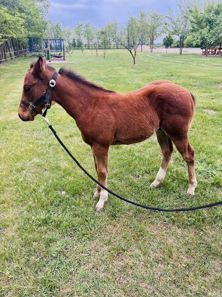 American Quarter Horse Stallion – born in February 2025 For sale is a colt born in February 2025. He is raised in semi-open (pasture-based) housing. His sire is Reds Rooster Delmaso, and his dam is Sliding del Custom. He is a friendly, curious, and eager-to-learn young colt. He has excellent conformation, strong bone structure, and moves with lightness and ease. His sire was an outstanding competitor, and his dam’s side includes the Topsail Whiz bloodline, making him an excellent prospect for future competition on both the sire and dam side. Feel free to contact me for more information!