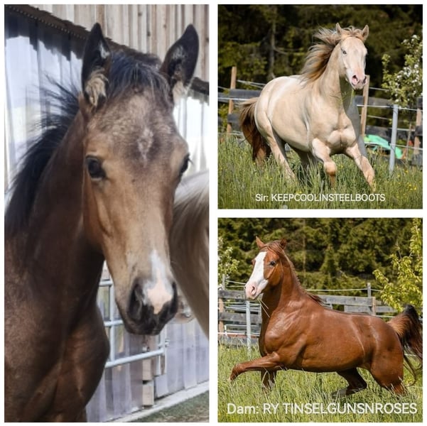 POCO RAYINTINSELTOWN "RAY" Quarter Horse stallion foal, dark buckskin, born April 5, 2025 Strong and correctly built With an excellent pedigree! Very sweet, charming, and people-oriented character Price on request Location: A-3293 Dam: RY TINSELGUNSNROSES (Sire: Tinseltownsmokingun) Sire: KEEPCOOLINSTELLBOOTS (Sire: IJ Rocky Steeldust)