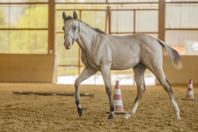 Extrem gut gebautes , bewegungsstarker Hengst in der Traumfarbe Buckskin Splash !! Sein Vater ist Spooks Gotta Spark , seine Mutter eine produzierende Tochter von Wimpys Little Step. Ihre Mutter wiederum , Lil Chic Peppy hat Offspring Earnings >150.000 $ Dieser kleine, kompakte Hengst besitzt alles was man sich wünscht: Mega Body, viel Athletik und er ist ein absoluter Eye-Catcher. Anschauen lohnt sich !