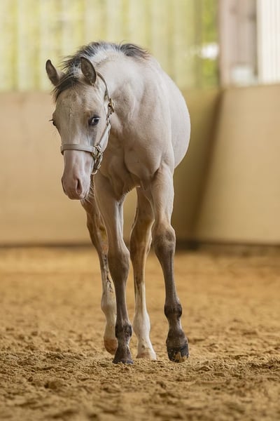 Ekstremalnie dobrze zbudowany, ruchliwy ogier w wymarzonym kolorze buckskin splash!! Jego ojcem jest Spooks Gotta Spark, a matką produkująca córka Wimpys Little Step. Jej matka, Lil Chic Peppy, ma na koncie ponad 150 000 USD zarobków od potomstwa. Ten mały, kompaktowy ogier ma wszystko, czego można sobie życzyć: imponującą budowę, dużą atletyczność i jest absolutnym przyciągaczem spojrzeń. Warto go obejrzeć!