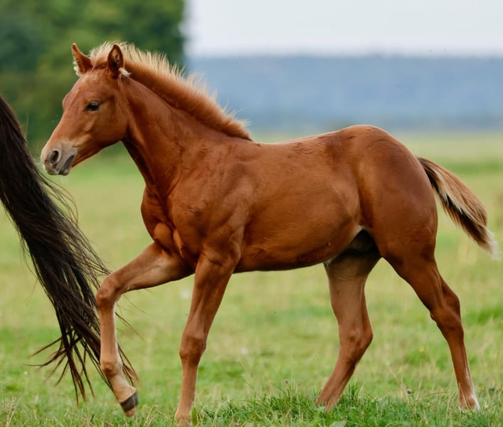 MAYBE GOTTA SMILE 2025 QH Hengst, sorrel 5 panel n/n Toller Hengst von Erfolgspferd BB Gotta Gold Tinsel. Er besticht durch einen wahnsinnig korrekten und kompakten Körperbau. Er ist einer der ersten Nachkommen von BB Gotta Gold Tinsel. Der Vater ist ein europäischer Hengst der bisher $ 117.00,- gewonnen hat und immer noch erfolgreich im Sport läuft, dabei hat er noch nie ein Level 4 Open Finale versäumt - konstanter geht es nicht. Die Mutter Prescriptions May ist eine direkte Tochter vom Hengst Prescriptions Lena by Taco Lena. Maybe Gotta Smile steht in Deutschland und ist ieinbezahlt für NRHA Euro und NRHA Germany ********************************************************************* MAYBE GOTTA SMILE 2025 QH stallion, sorrel 5 panel n/n Great stallion by successful horse BB Gotta Gold Tinsel. He impresses with his incredibly correct and compact body. He is one of the first offspring of BB Gotta Gold Tinsel. His sire is a European stallion who has won $117,000 to date and is still successful in sport, having never missed a Level 4 Open Final – you can't get more consistent than that. The dam, Prescriptions May, is a direct daughter of the stallion Prescriptions Lena by Taco Lena. Maybe Gotta Smile is located in Germany and is nominated for NRHA Germany and NRHA European Program.