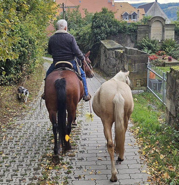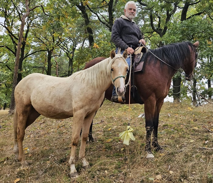 Peppy Doc King Maxen - Dieser 2024 geborene Palomino (Endmaß ca. 148 cm) mit traumhafter weißer Mähne und Schweif ist ein absoluter Eyecatcher - kompakt, korrekt gebaut und mit vielversprechenden Proportionen. Ein Nachwuchspferd, das nicht nur durch seine Optik, sondern auch durch seinen tollen Charakter überzeugt. Er ist menschenbezogen, freundlich, aufmerksam und lernwillig. Im täglichen Umgang zeigt er sich artig, entspannt und unkompliziert. Herausforderungen begegnet er mit Mut und Neugier und lernt schnell. Schon jetzt lässt er sich problemlos verladen und geht ruhig und gelassen an der Hand ins Gelände. Der Hengst wächst gesund und robust im Offenstall in gemischter Herde auf und wird liebevoll und mit viel Sachverstand an seine Aufgaben als Reitpferd herangeführt - nach den Prinzipien des Natural Horsemanship, Schritt für Schritt und ohne Zeitdruck. Die Farbgenetik (e/e, A/a, CH/ch) macht ihn nicht nur farblich besonders interessant, sondern eröffnet auch züchterisch Potenzial. Peppy ist altersgemäß geimpft und regelmäßig entwurmt. Seine Abstammung lässt keine Wünsche offen: Top Cuttinglinien (Enkel von Peptoboonmal) väterlicherseits treffen auf ausgezeichnete Reiteigenschaften mütterlicherseits - eine ideale Kombination für Sport, Turnier und Freizeit. Der Hengst ist DQHA sowie Regional-Futurity startberechtigt und bringt alles mit, um in Zukunft ein vielseitig einsetzbares Reitpferd mit Charme, Talent und Herz zu werden.