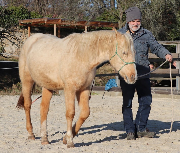 Stallone di forte costituzione - Peppy è costruito correttamente e orientato alle persone. Il suo pedigree da taglio di alto livello da parte del padre si combina con super qualità di monta da parte della madre. È un nipote del sire Peptoboonsmal da 25 milioni di dollari. I suoi fratellastri hanno successo nel reining, nel cutting, nel ranch riding e nel cowhorse. Peppy ha il 22% di Peppy San Badger nel suo pedigree. Attualmente si sta godendo la vita in un grande pascolo. PEPPY è idoneo a competere nei futures DQHA e regionali. Lo stiamo preparando con cura per la sua vita futura utilizzando i metodi dell'equitazione naturale.