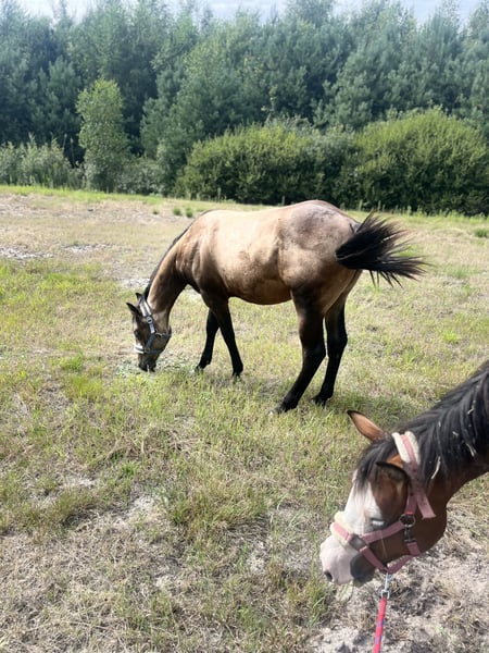 Na sprzedaż piękny ogier American Quarter Horse urodzony w 2024 roku. Koń jest maści buckskin, o wzroście 149 cm, Koń posiada Panel test 6N/N Po Ogierze Whiskey n Diamonds -LTE 224 000 $ Sire Earnings 3Milion $ Klacz MIss Mercedes Po ogierze Mercedes Rooster LTE -11 000$ (Cromed out Mercedes LTE 146 000$) idealny do dyscypliny reining. Doskonała budowa i spokojny charakter sprawiają, że będzie świetnym towarzyszem zarówno dla początkujących, jak i doświadczonych jeźdźców. Zapraszam do kontaktu w celu uzyskania dodatkowych informacji i umówienia się na oględziny.