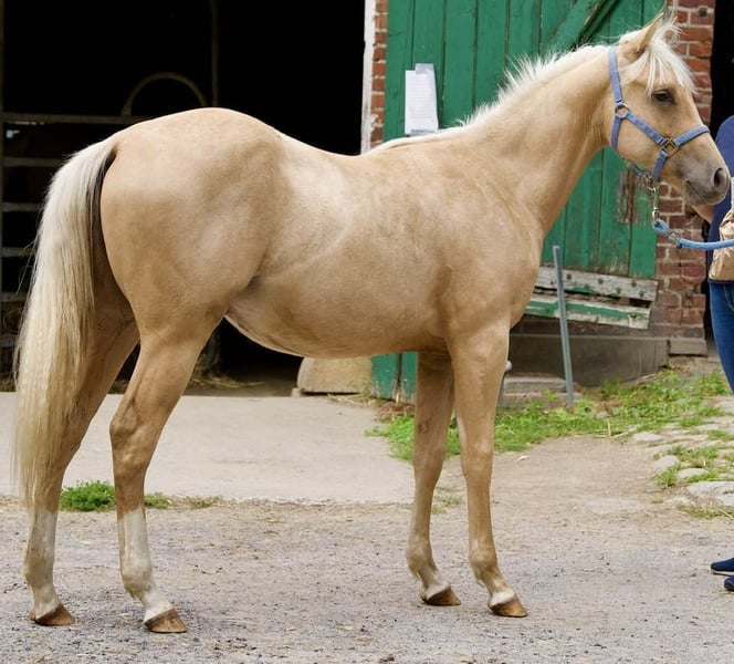 Smart Dressed Spook - wundervoller Quarter Horse Hengst, 4.2024 geboren mit einem geschätzten Endmaß von 150 cm, mit erstklassiger Abstammung und toller Farbe. Clark ist ein super Beweger mit einem freundlichen und sehr wachen Mind. Er besticht durch seine offene und interessierte Art. Hat das Fohlen ABC mit Hufe geben, Pflege, Halfterführtigkeit und höfliches Miteinander gelernt. Der Hengst ist alle 6-8 Wochen beim Schmied mit kleinen Korrekturen vorgestellt worden. Wurde regelmäßig entwurmt und dem Tierarzt vorgestellt. Die Jungpferde sowie die Mutterstuten werden mit bestem Heu sowie sehr hochwertigem Zuchtmineral/- futter versorgt und stehen 24/7 draußen auf Weide, Trail und befestigten Paddocks. Aufgewachsen ist er die ersten 6 Monate im Herdenverband mit anderen Stuten und Hengstfohlen und seit Ende des Monats mit seinem besten Buddy zur Aufzucht umgezogen. Clark ist ein Sohn vom erfolgreich geshowten Sharp Dressed Shiner, Topvererber mit Offspring earnings $ 70.000,00 und ein direkter Nachkomme von Shining Spark 10 Mio. EUR Sire und Smartly Dressed, eine Halbschwester von Taris Designer Genes nd A Vintage Smoke mit Offsprings earnings $ 300.000,00. Clarks Mutter ist eine Tochter von Best Spook aus Smart Spook 8 Mio. $ Sire und Best Stop einer Custom Chrome Tochter. Bei ihrem ersten Turnier mit 3 Monaten Training nach der Fohlenpause ist sie bei der EWU DS Aachen 2025 direkt platziert 1. Platz LK 1 jun Ranch Riding 75.0, 6. LK 1 jun Western Ranch Rail, 3./12. Q LK 2/1 jun Ranch Riding 72.0 / 71.0, 7. Q LK 2/1 jun Western Ranch Rail. Dam ARC Calbar Gal mit NRHA earnings ist eine direkte Snapper Cal Bar, NCHA LTE $ 250.000,00 und Enkelin von World Champion Be Aech Enterprise mit offspring earnings $ 1.345.000,00. Smart Dressed Spook ist für EWU JUPF, NRHA Germany und NRHA Euro einbezahlt. Wird gerne in ein Showhome abgegeben.