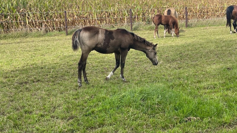 Wegen Zuchtaufgabe Charismatischer 2 jähriger sooty buckskin Quarter Hengst mit toller Abstammung. Brav im Handling Sehr schöner Beweger. EWU Jungpferde eingezahlt Wächst in Junghengstherde auf