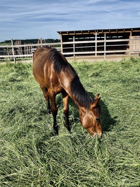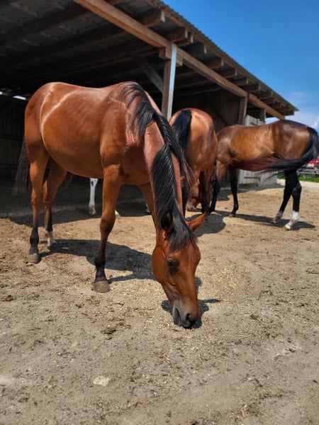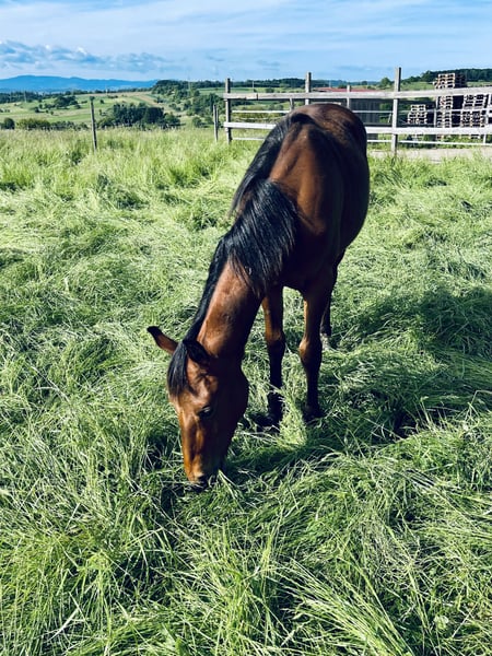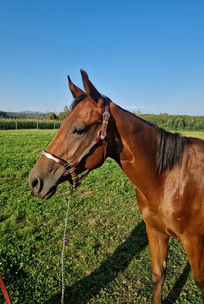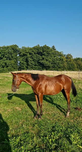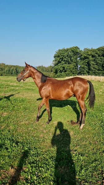 Pour notre "BEN" (ZIPPOS BENTLEY RIDE), nous recherchons une maison 5 étoiles. Ce joli étalon Quarter Horse (né en 2024) a vu le jour chez nous. Ses parents sont également sur notre ferme : Mère : ZIPPYS GLAMOURDONNA Père : Zippos King Bar BEN est notre petit paquet de muscles. Il se distingue par son apparence élégante et intemporelle. Il possède une conformation très correcte et est doté d'un mouvement exceptionnel. Il convient aussi bien pour les compétitions que pour les loisirs. Il est actuellement encore en élevage avec sa mère et a des poulains de son âge pour jouer. Il a découvert tout ce qu'il faut savoir à cet âge : Donner les sabots, être brossé, se doucher/laver, être mené en licol. Ben est régulièrement vermifugé, possède un passeport équin de la DQHA et les papiers américains (certificate of registration) de l'AQHA. Il peut soit rester ici pour un élevage supplémentaire, soit déménager dans sa nouvelle maison. Si vous souhaitez rencontrer Ben, n'hésitez pas à nous écrire.