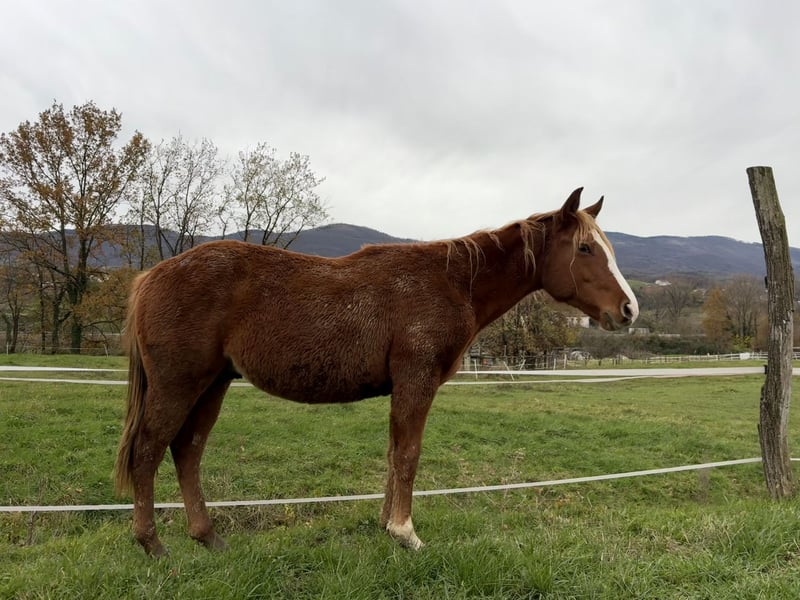 Pony de raza Quarter Horse, potro de 2 años Paco es un caballo amigable, tranquilo y sin malos hábitos, listo para nuevas lecciones y aventuras. Está esperando para conocerte. Tiene un test de panel de 6 genes: IMM & MYH1 N/N HYPP N/N HERDA N/HRD PSSM N/N GBED N/N MH N/N Cuenta con identificación y pedigrí. Genética: Al igual que su padre JP K Pax, su abuelo Hot Smokin Chex y su tío lejano Big Chex To Cash, nuestro Paco también es portador del gen HERDA. Esta enfermedad es recesiva, lo que significa que un caballo que lleva solo una copia del gen está completamente sano. Si deseas mantenerlo como semental, solo podrá ser cruzado con yeguas que sean HERDA N/N y PSSM N/N. Por acuerdo, también puede ser castrado. En dos de las fotos aparece su padre, JP K Pax. Más información, fotos y videos por mensaje privado. 📍Ubicado en Eslovenia, cerca de la frontera italiana (Gorizia).