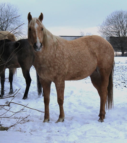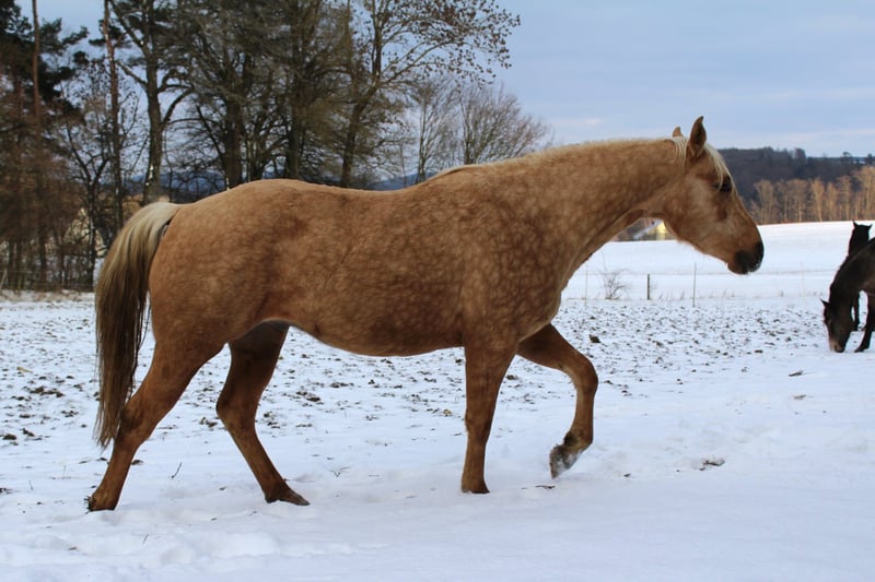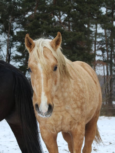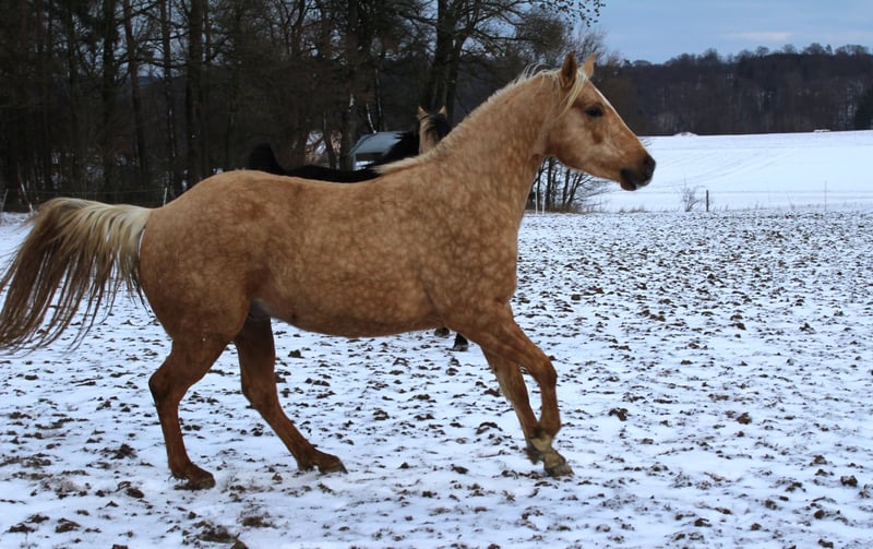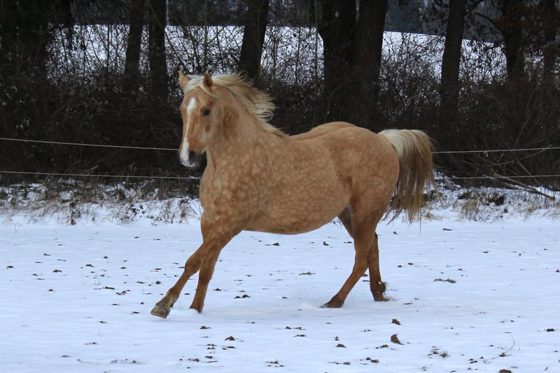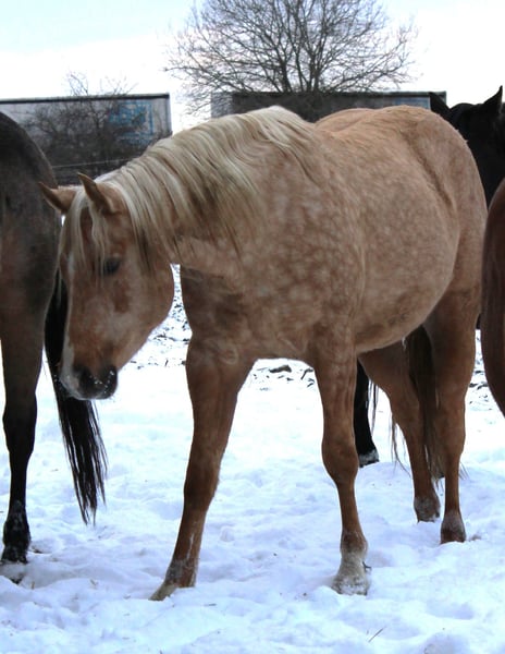 Hübscher QH Hengst Palomino geb. 04/2023 Aktuell ca. 1,48m groß AQHA Papiere und DQHA Pass Aufgewachsen im Herdenverband in 24 Std. Weidenhaltung auf unterschiedlichen Koppeln an Straßen, Wald und Wanderwegen und Laufstall mit Koppelgang, dadurch sehr gut sozialisiert und trittsicher. Neugierig und aufgeschlossen, freundlich und ehrlich, fein und aufmerksam. Durfte in Ruhe und mit Spielkameraden groß werden und auf weitläufigen Flächen toben. Kennt geputzt werden und Hufe geben, das Gelände durch das am Halfter geführte Versetzten, zusammen mit der restlichen Herde, ansonsten roh und unverbraucht. Könnte auf Wunsch zur weiteren Aufzucht noch vor Ort stehen bleiben oder auch zeitnah seine Köfferchen packen. Bei Interesse kann er gerne kennengelernt und angesehen werden.