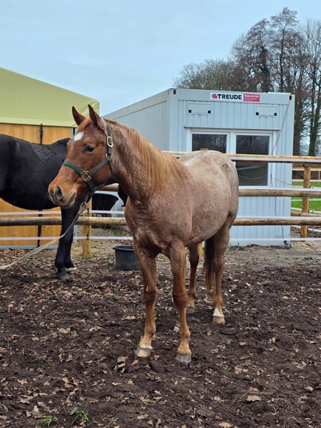 OH Trustfull Power - traumhafter, red roan Quarter Horse Junghengst, 5.2023 geboren mit einem geschätzten Endmaß von 155 bis 160 cm, mit erstklassiger Allroundabstammung und sehr lieben Charakter. Dieses kleine Juwel sucht neue Herausforderung. Der Hengst ist sehr aufgeschlossen, menschenbezogen und lieb im Umgang. Zurzeit steht er auf Sommerweide und darf seine Jugendzeit genießen. Trusty ist halfterführung und kennt alles, was man als Jungspund kennen und können sollte. Er ist gesund und 6-Panel n/n. Wurde mit einer Fohlenprämie ausgezeichnet. Trusty beeindruckt nicht nur durch seine Optik, auch weiß er sich zu bewegen und zeigt Talent für den Allroundbereich. Er ist einer der letzten Nachkomme von Good Impulses, ein Zippos Mr Good Bar Sohn aus einer Hot Impulse Tochter. Trustys Mutter ist eine Doc Chex Brother Tochter. Der Hengst ist ins EWU Jungpferdeprogramm eingezahlt. Trusty ist ein talentiertes Nachwuchspferd, das im Sport als auch als treuer Begleiter überzeugen wird. Ebenso auch zur Zucht interessant.