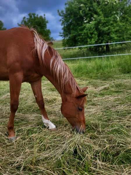 Para nuestro "Leo" también estamos buscando un hogar de 5 estrellas. Este genial semental Quarter Horse (nacido en 2023) ha visto la luz del mundo con nosotros. Sus padres también están en nuestra finca: Madre: TL Blue Alice (Aint It The Blues) Padre: Zippos King Bar Leo es, en todos los aspectos, un "tipo genial". Quiere agradar a su persona en todo momento y siempre es relajado y tranquilo. Posee una estructura atlética y correcta, y está bendecido con un excepcional movimiento. Es adecuado tanto para competiciones como para el ocio. Actualmente sigue siendo semental y no muestra ningún comportamiento de semental. Es simplemente un tesoro en el manejo. Con nosotros ha aprendido todo lo que se necesita saber a esta edad: Dar los cascos, presentarse al herrador, cepillarse, ducharse/lavarse, pasear/ser conducido. Leo tiene todas las vacunas básicas, se desparacita regularmente, tiene un pasaporte equino de la DQHA y los papeles americanos (certificate of registration) de la AQHA. Actualmente está con otros potros en nuestra cría. Puede quedarse aquí para continuar su crianza o mudarse a su nuevo hogar. Si desea conocer a Leo, simplemente escríbanos.