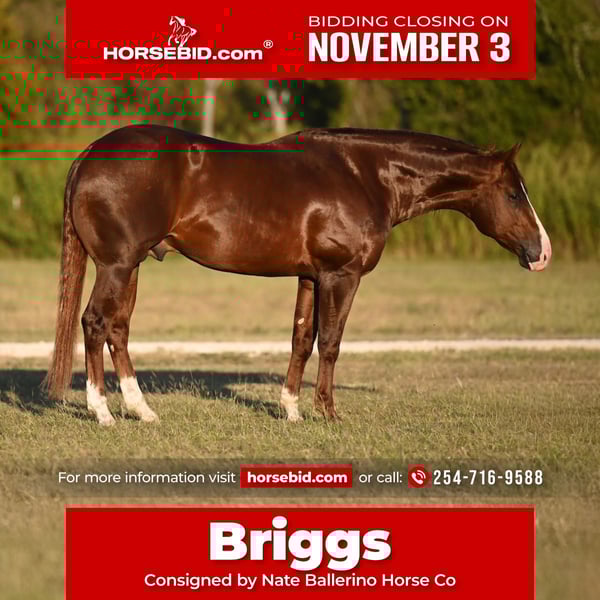⚜️𝐓𝐇𝐄 𝐅𝐀𝐋𝐋 𝐇𝐄𝐑𝐈𝐓𝐀𝐆𝐄 𝐂𝐋𝐀𝐒𝐒𝐈𝐂⚜️ Happening now thru MONDAY | NOVEMBER 3rd - Available EXCLUSIVELY on HorseBid's website! For more details and to register visit: www.Horsebid.com CONSIGNOR CONTACT: Nate Ballerino Horse Co 254-716-9588 LOCATION: Waco Tx BREED: Quarter Horse REGISTERED: Yes REGISTERED NAME: Bonn Appetit COLOR: Chestnut HEIGHT: 14.3 AGE: 3 GENDER: Stallion Here’s a young stallion that checks all the boxes — bred right, broke right, and minded right. This 3-year-old son of Whiz Van Winkle has a solid year of professional reining training and it shows in everything he does. He knows all his maneuvers — turns, stops, lead changes, and departures— and stays soft, collected, and in frame every step of the way. He’s gentle in every single aspect — easy to saddle, shoe, bathe, and handle, and quiet enough for anyone to ride. Whether you’re looking for a stallion prospect with an incredible mind or a gelding-caliber temperament in a breeding package, this colt is the kind that’s hard to find. He’s also showing real promise in the rope horse world, with the movement, mindset, and trainability to make a standout on either end.