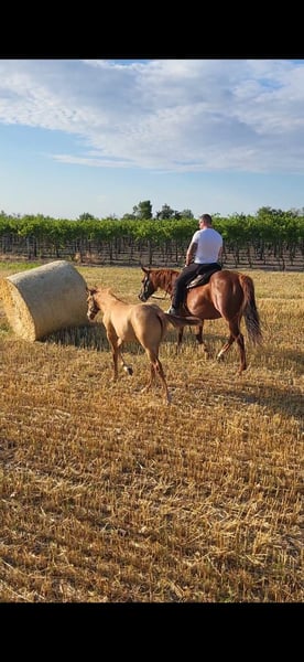Verkaufe American Quarter Horse Hengst – Geburtsjahr 2025 Zum Verkauf steht ein vielversprechender American Quarter Horse Hengst, geboren im März .Der zeigt bereits jetzt viel Talent und Potenzial . sein freundliches Wesen und seine Lernbereitschaft machen ihn zu einem idealen Partner für ambitionierte Reining/Hobby-Reiter oder Züchter. Er ist sehr ruhig, auch für Kinder geeignet. Durch die Eltern er ist Panel Negativ, hat Passport, AQHA Papier, alle Impfungen, und kennt das Fohlen ABC. Hufschmied ist kein Problem für ihm. Von seiner Mutter habe ich ein Photo hochgeladen. Bei Interesse und für weitere Informationen stehe ich gerne zur Verfügung. Besichtigung sind nach Vereinbarung möglich