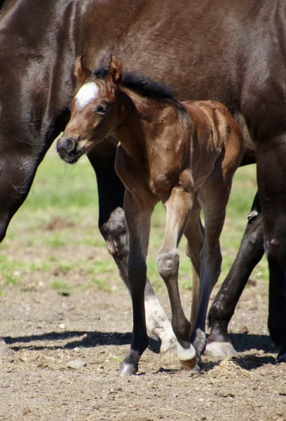 Puledro stallone Quarter Horse in bay roan, linea Hancock