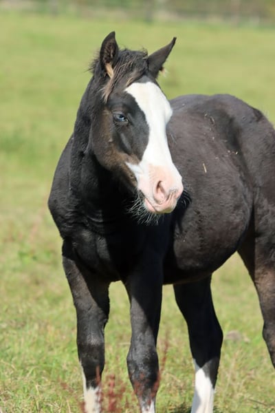 CHEYENNESJUJUGUNPLAY Cavallo stallone AQHA Splash Overo baio scuro. (omozigote nero) Nato: 18.05.2025 Altezza finale circa 150 cm 7 Panel N/N EE Aa SW2/n