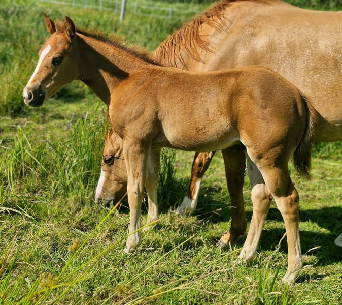 Ranch Horse trifft auf Cow Horse❤️ Frederick ist am 20.04.2025 geboren. In schicker chestnut Farbe überzeugt er mit seiner Coolness und seinem unkomplizierten Wesen Er kennt das Fohlen ABC, ist regelmäßig entwurmt, seine Papiere und Equidenpass sind beantragt Er wächst im Herdenverband im Offenstall auf, kennt Hunde und Kinder Endmaß ca 1,52m Über die Eltern N/N (könnte HERDA Einzelgenträger sein) Standort: 18574 Gustow ( Insel Rügen)