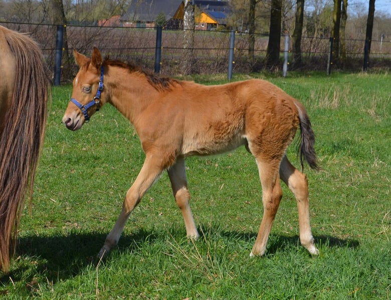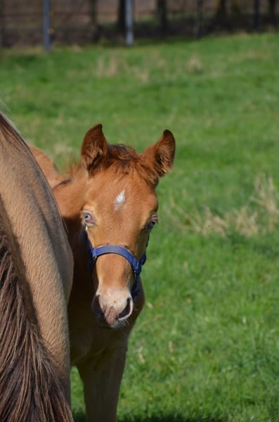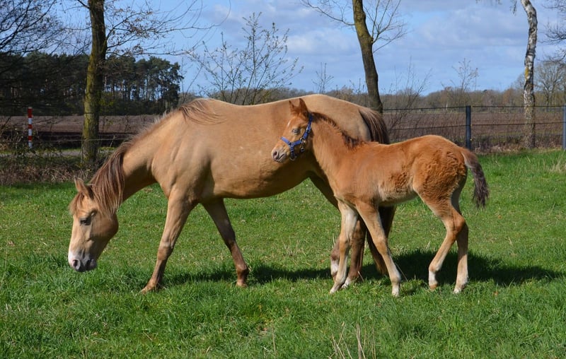 Quarter Horse Hengstfohlen in goldener Jacke sucht ein zu Hause. Er wurde am 5.2.2026 geboren, er darf mit 6 Monaten ausziehen. Wird ein Endmass um die 155 cm bekommen. 5 panel nn. Steht super auf den Beinen. Die blauen Augen werden verschwinden. Sie wechseln in Beerensteinfarbend um. Den Namen darf man sich noch aussuchen. Läuft am Halfter, wird regelmäßig entwurmt. Mit AQHA Papier und DQHA Pass Wächst in Fohlengesellschaft auf. Sein Vater ist Dc Cool Goodys Champ. Ein Quarter Horse Hengst der auf einigen Meseen im Showprogramm dabei war. Steht auch bei uns am Hof. Seine Mutter Kings Peppy Tivio ist eine sehr brave Stute die bei uns schon tolle Fohlen geboren hat. Hat ein schönes altes Papier..