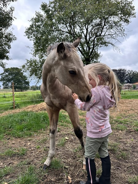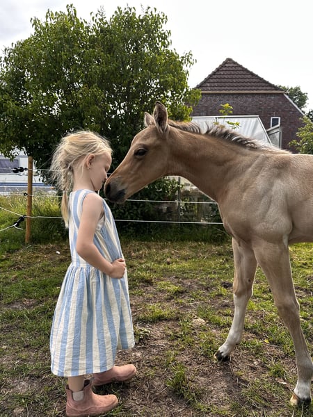 Unser wunderschöner Buck sucht ab November ein 5 ⭐️ zuhause. Geb: 29.05.2025 Vater : Doolins Candy Bar ( Paint) Mutter : Star Little Moon ( Quarter ) Buck ist super neugierig , schlau und ein echter Hingucker . Typisch für die „Doolin“ Fohlen ist sein Charakter . Er kennt das Fohlen ABC , gibt alle Hufe , kennt das Halfter & hat einfach gar keine Angst und ist immer entspannt . Er hat nun schon ein tolles , stabiles Exterieur was auf eine weiter tolle Entwicklung hoffen lässt . Buck wird eine tolle Größe bekommen und durch sein tolles Fundament auch später größere Leute gut abdecken .