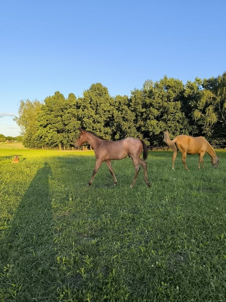 **Zu verkaufen: RG KING OF CALIMERO - Hengst AQH in der Farbe bay roan** Wir freuen uns, Ihnen den außergewöhnlichen Hengst RG KING OF CALIMERO zum Verkauf anzubieten, geboren am 17. Mai 2025. Seine Mutter ist die wunderschöne MY LITTLE PRINCESS und sein Vater der talentierte MS CALIMERO Blue, was unserem Hengst hervorragende Eigenschaften von beiden Eltern verleiht. Beide Elternteile sind erfolgreich in Rinderwettbewerben aktiv. RG KING OF CALIMERO besticht durch seine schöne bay roan Farbe, die ins Auge fällt und ihn nicht nur zu einem großartigen Pferd, sondern auch zu einer echten Bereicherung für jeden Stall macht. Er ist intelligent, leicht zu handhaben und hat einen ausgezeichneten Charakter, gibt die Beine und wird an der Führleine geführt. Der Pass und das Zertifikat sind in Bearbeitung. Der Preis ist verhandelbar, weitere Informationen erhalten Sie unter der Telefonnummer. Wir laden Sie ein, Kontakt aufzunehmen und einen Besichtigungstermin zu vereinbaren!