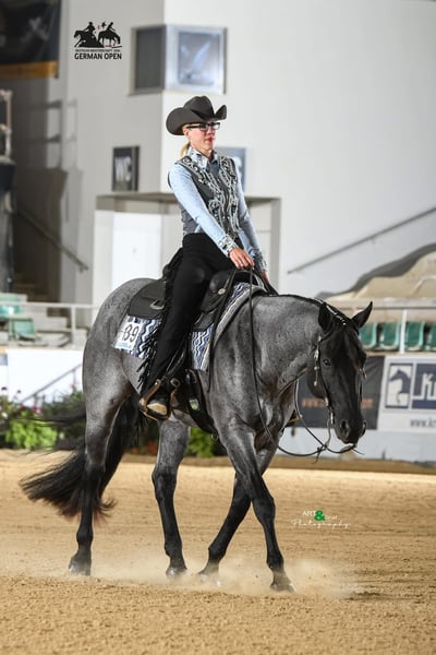 Special Angebot für Decksasion 2026 nur begrenzte Anzahl für den Preis! Deckanzeige: MC LittleBlueDressed Gino ist ein lieber Kompakter gemütlicher Allround Quarter Horse der mit seiner tollen Farbe Blue Roan auffällt. Er ist 2014 geboren. Im Umgang ist Gino ein total lieber. Vater: Dressed by Red , Mutter: Zippos Littlefoot Wurde Erfolgreich in Halter, Trail in Hand, Longline, Jungpferde Basis/Trail, Pleasure vorgestellt. Unter anderem ist er mehrfacher Landesmeister, VizeEuropameister, Mehrfacher VizeFuturity Champion, Longline Champion, mehrfacher Futurity Halter Champion, High Point Champion, Reserve High Point Champion, Top Ten in der Weltrangliste, mehrfacher Finalist German Open, viele Siege, Platzierungen uvm. Super cool im Gelände. Seine Nachkommen sind sehr Erfolgreich im Turniersport mehrere 1A Premium Fohlen und super tolle Freizeitpartner, easy im Umgang. Bei Interesse: Frauke Hoffmann, Standort: 38518 Gifhorn, mc-ranch@web.de bei Facebook unter Frauke Hoffmann ist ein Foto/Video Album vom Gino. Decktaxe alle Rassen TG Preis: 333€ begrenzte Anzahl! Versand macht Deckstation Georgi. https://www.facebook.com/share/17X413kw23/?