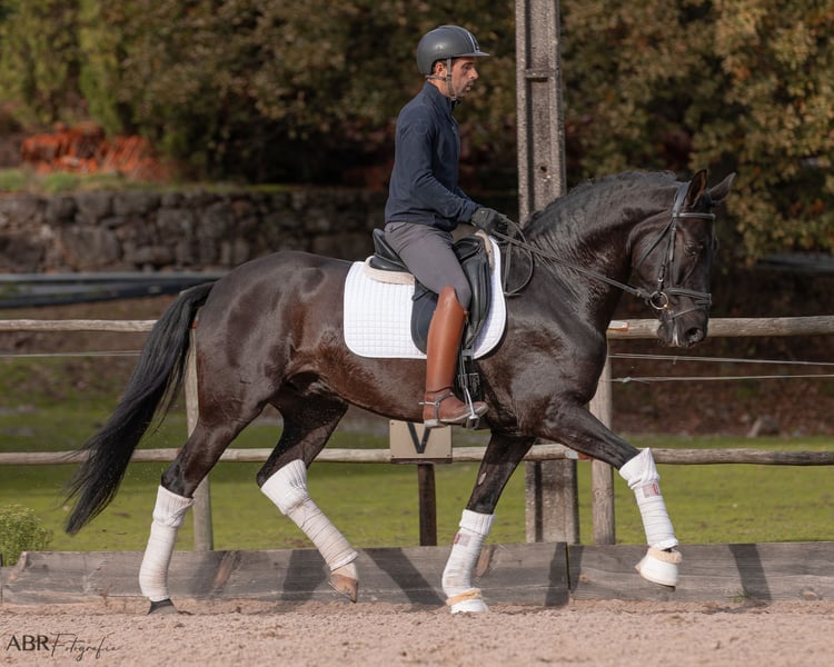 Platão is een prachtige zwarte Lusitano ruin die zich voorbereidt op een veelbelovende toekomst in de dressuur. Hij is niet alleen getalenteerd met expressieve gangen, maar heeft ook een lieve en meewerkende persoonlijkheid, perfect voor een ambitieuze ruiter om hem door de niveaus te begeleiden. Hij bevindt zich in het noorden van Portugal, op slechts een uur van Porto. Voor meer informatie graag WhatsAppen naar +1 305-609-2572.
