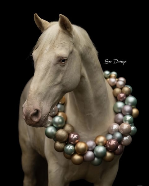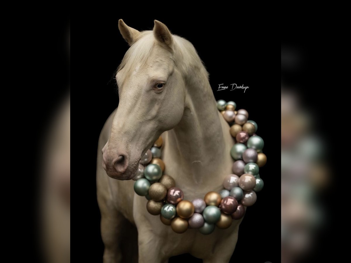Blauwe ogen van stilte. Een 11-jarige Andalusië-ruin (1,54 m) in de zeldzame speciale kleur Cremello – met oceaanblauwe ogen, zo helder en kalm als de horizon boven de zee. Hij brengt een rust mee die niet te verklaren is. Je voelt het zodra je naast hem staat. Open van geest, verfijnd in uitdrukking.