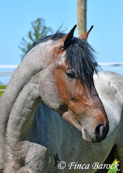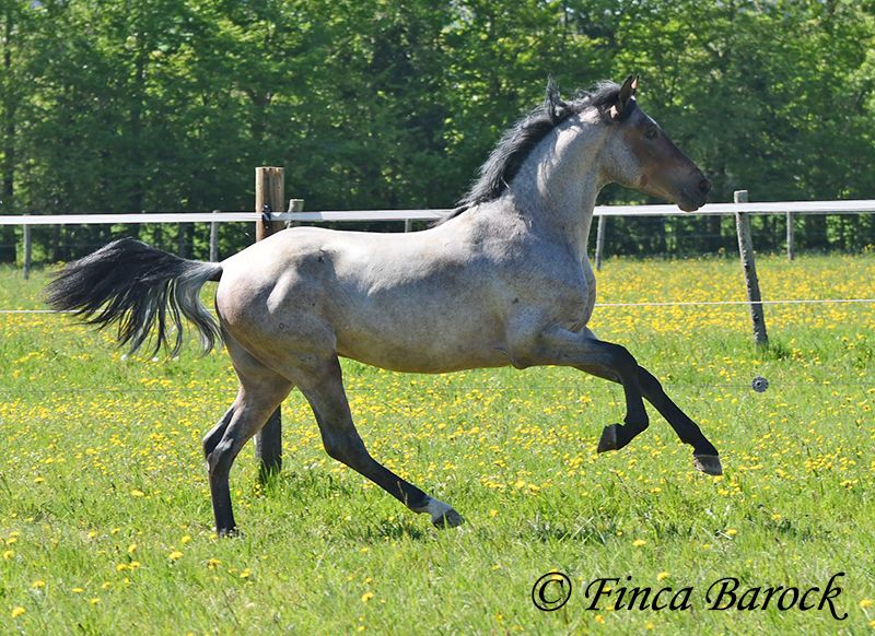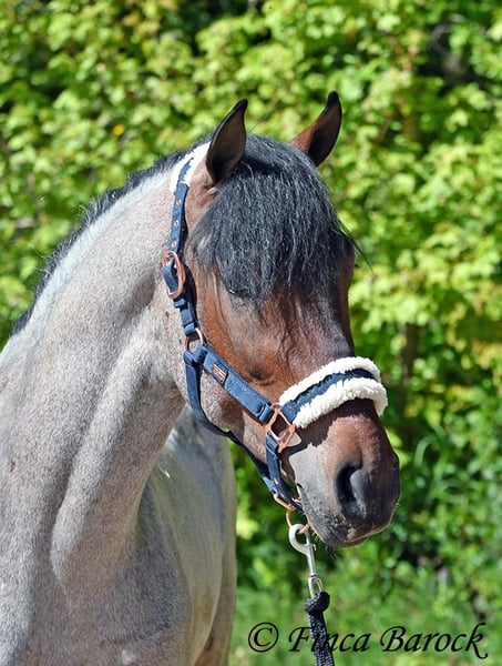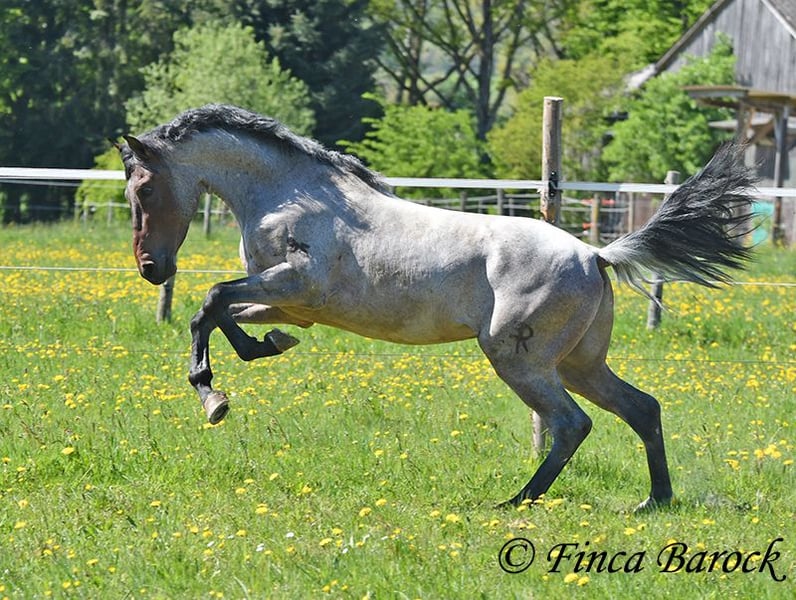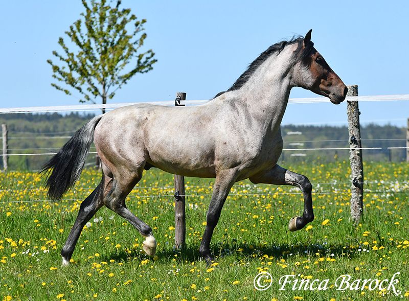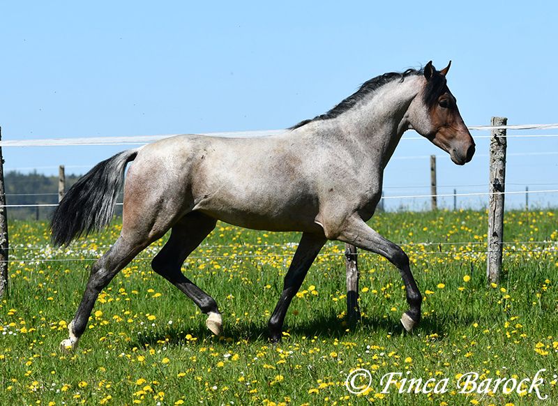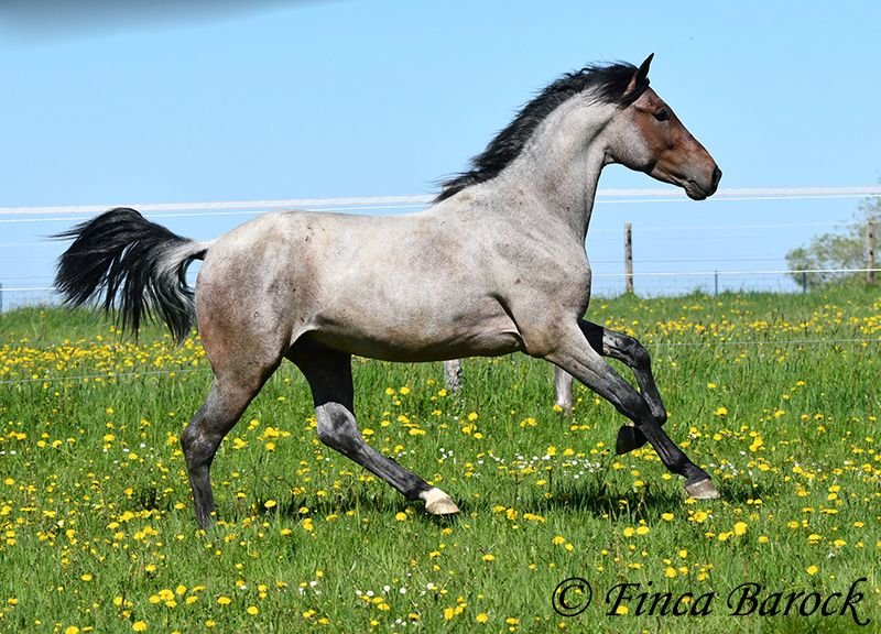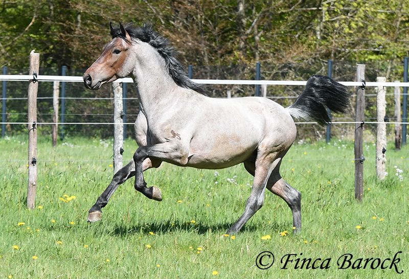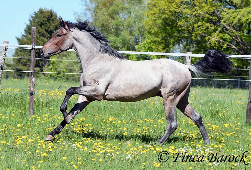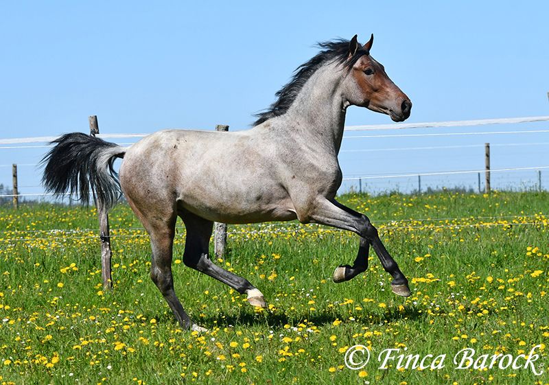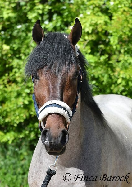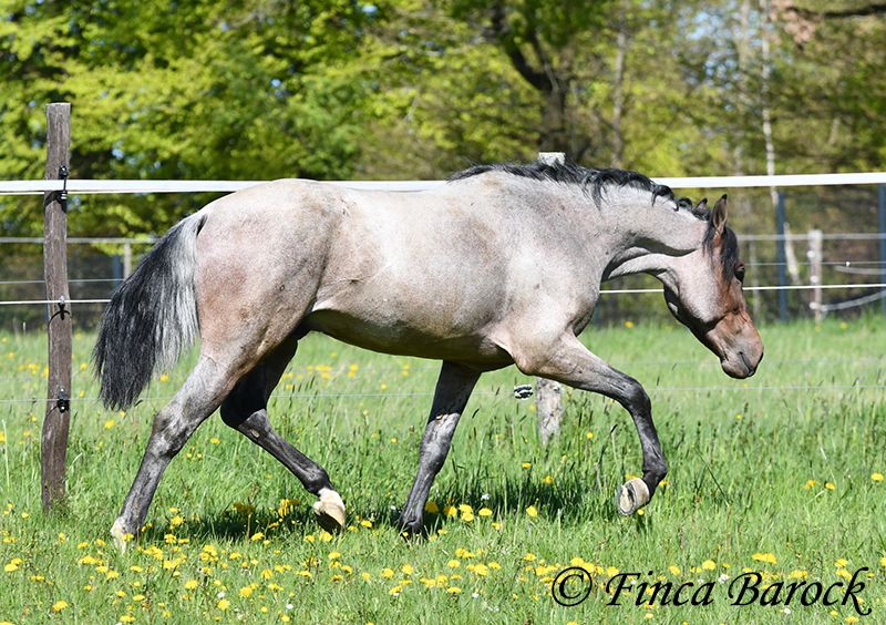 Rasse: Andalusier Name: Paulino Geschlecht: Wallach Stockmaß: zz 148 cm (steht noch voll im Wachstum) Alter: 15.09.2023 Farbe: Roan Preis: 5900 € Vater: o. P. Mutter: o. P. Paulino vereint die Sonderfarbe Roan mit einem mega freundlichem Charakter und guten Bewegungen! Der kleine Bub steht noch voll im Wachstum und wird noch ein paar cm wachsen und allgemein auslegen. Er ist in den GGA anlongiert und ein echter Gentleman. Paulino ist gut erzogen, kennt die üblichen Hofgeräuche und Hunde. Spaziergänge findet er spannend und freut sich neues zu entdecken! Insgesamt zeigt er sich mutig und aufgeschlossen! Dem Menschen gegenüber ist er zugewandt und verschmust. Herdenhaltung gewöhnt. Mit Paulino bekommt man einen echten Rohdiamanten zum selbst Ausbilden. Mit seinem unerschrockenem Wesen und seiner Wendigkeit können wir uns ihn auch gut in der Working Equitation vorstellen. Kontakt: Finca Barock, Tel. 0173-696 31 81,56291 Wiebelsheim